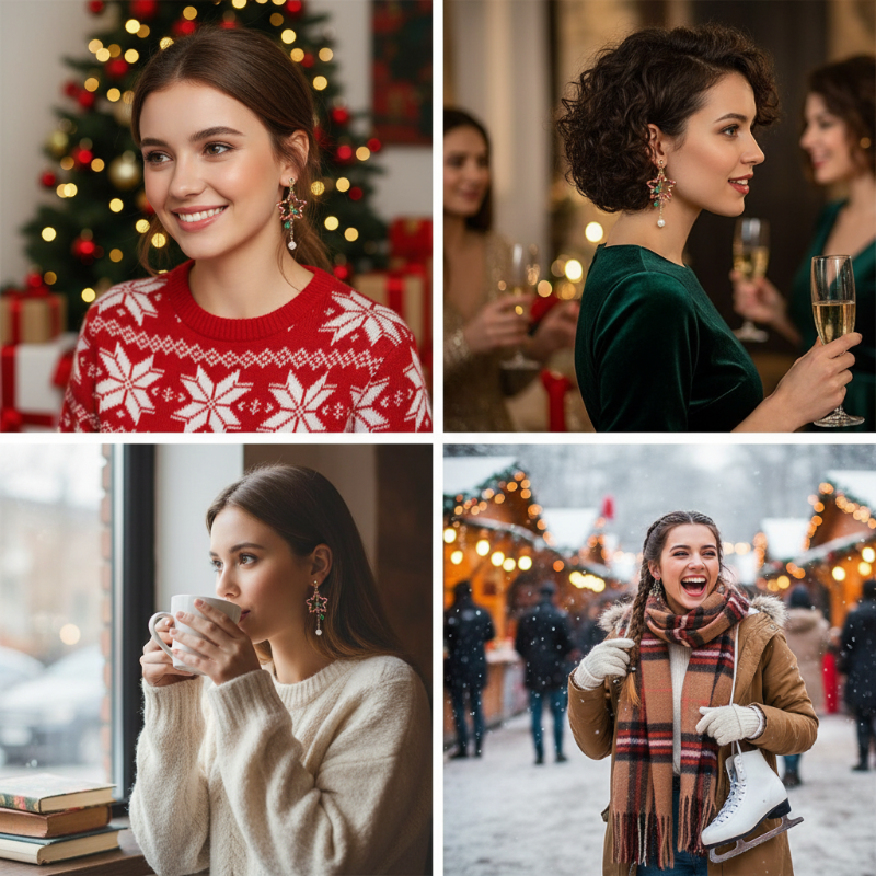KEVYET JA MUKAVAT - Pääasiassa kevyestä hartsista valmistetut korvakorut on suunniteltu pitkäaikaiseen käyttöön. Voit nauttia joulujuhlista ja pitkistäkin illanistujaisista täysin mukavasti ilman, että ne painavat tai vetävät korvalehtiäsi.