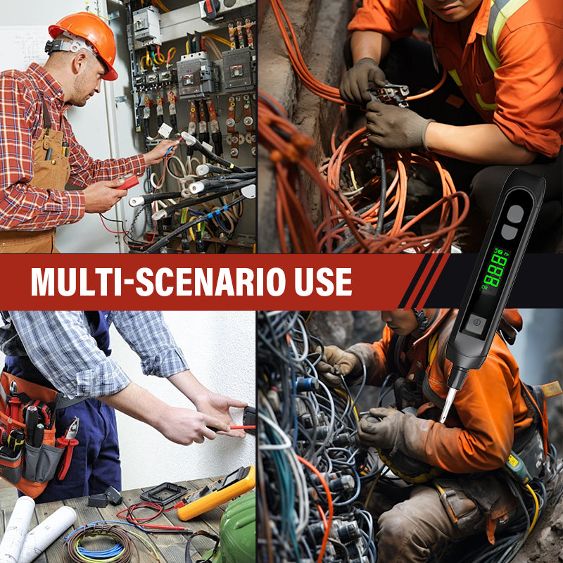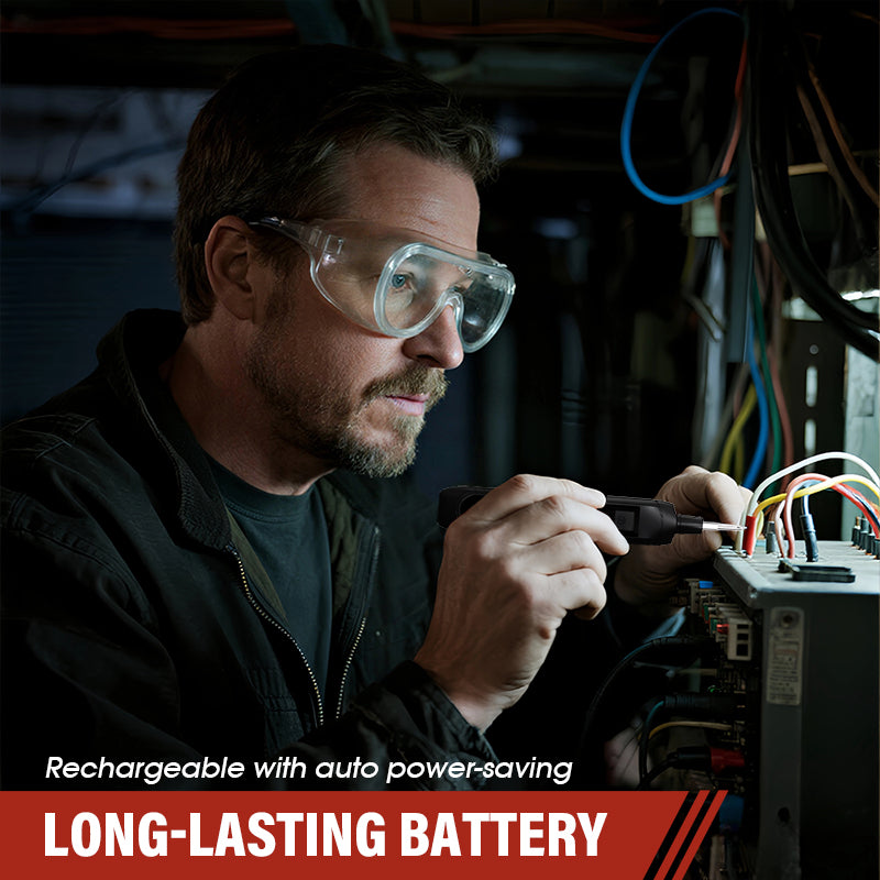 VOLTAGE VISIONARY - Näe sähkö kuin koskaan ennen! Testaajamme tarkka näyttö näyttää jännitteet 12 V:sta 300 V:iin. Kun vaara uhkaa, vilkkuvat punaiset varoitukset ja kiireelliset äänimerkit toimivat turvallisuuden vartijoina. Sopii erinomaisesti kodin sähkötarkastuksiin, koulukokeisiin ja teollisuuden huoltotöihin.