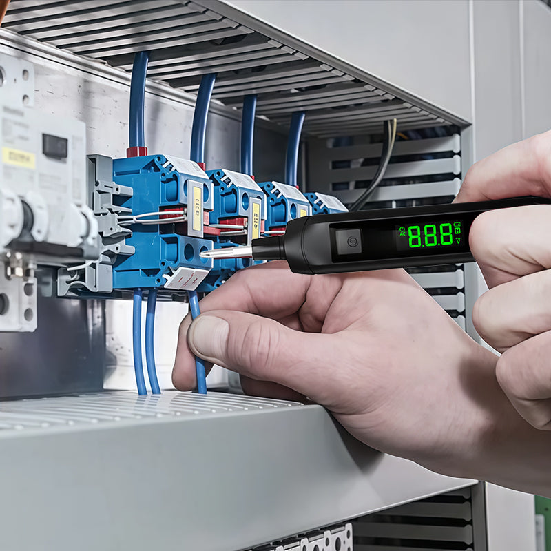 VALOA, KUN SITÄ TARVITSET - Sisäänrakennettu LED-kohdevalaisin valaisee pimeät kulmat. Yksinkertainen painikkeen painallus karkottaa varjot ja muuttaa ahtaat sähköpaneelit hyvin valaistuiksi työtiloiksi. Se ei ole pelkkä testeri, vaan henkilökohtainen valaistusavustajasi vaikeapääsyisissä paikoissa.